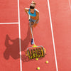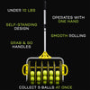 Weighing in under 10 pounds, this beefy collector is easy to use with just one hand, but it can pick up 5 balls at once and store over 50 balls in its carrier drum. When you've collected all your balls and are ready to get back to practice, flip the EZ Roller over and slide it into its adjustable tripod base. Both the telescoping staff and tripod can be adjusted to your desired height, then simply pluck balls out of the basket as you need them! No bending or stretching, just serving and stroking.